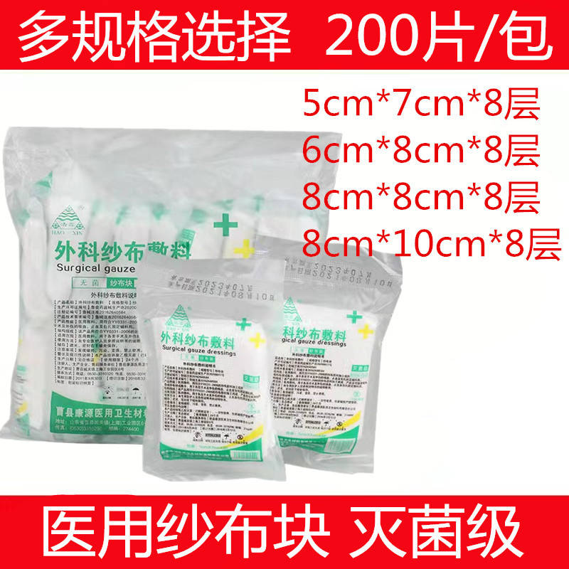 外科ガーゼドレッシング医療用ガーゼブロックガーゼ滅菌級ガーゼ200枚バッグ多規格選択