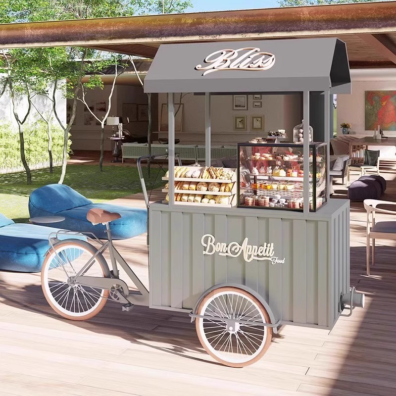 ネット赤移動コーヒー車屋外軽食バーベキュー台車多機能アイスクリーム展示車商用