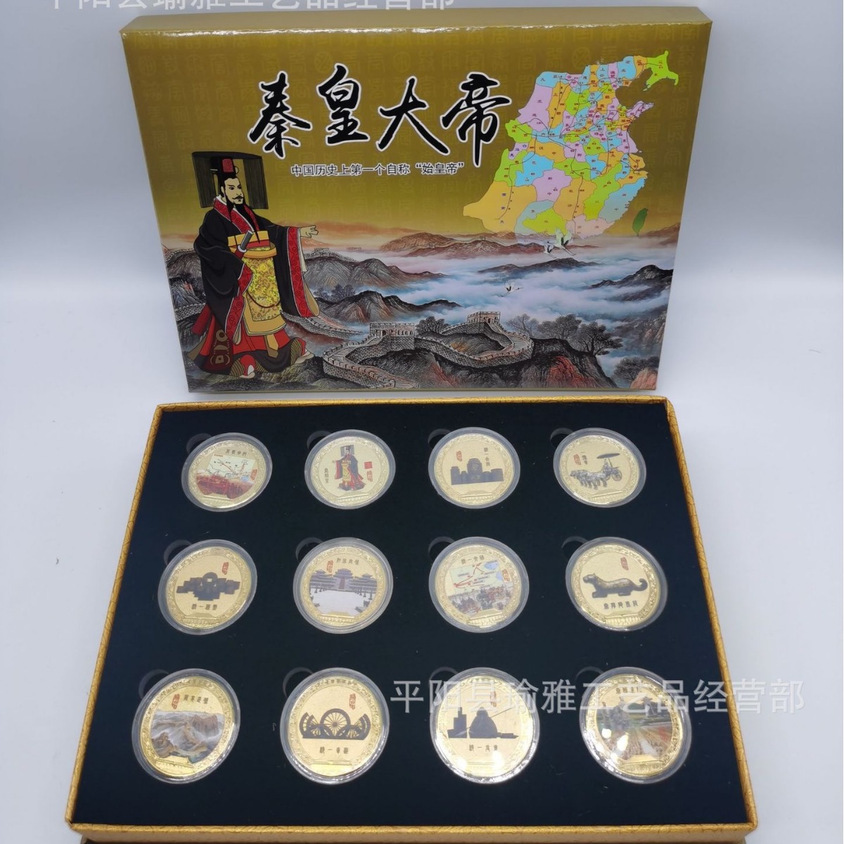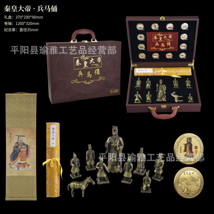 秦皇大帝兵馬俑12枚記念章合金俑画軸巻セット西安観光地区プレゼント