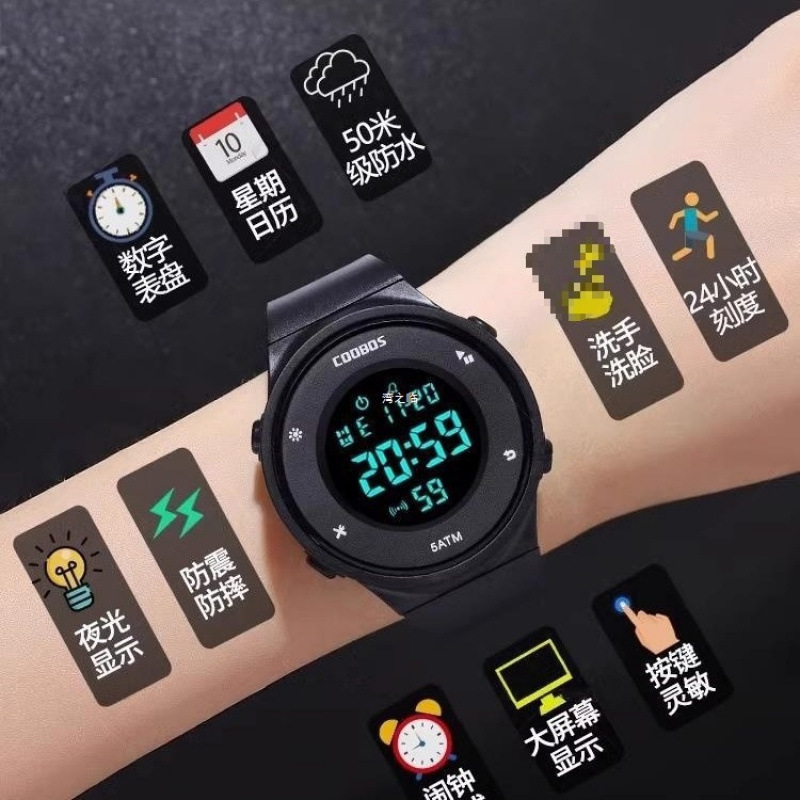 電子時計 メンズ 中学生 高校生 男の子 女の子 スポーツ 防水 夜光 大型 子供用 クロノグラフ