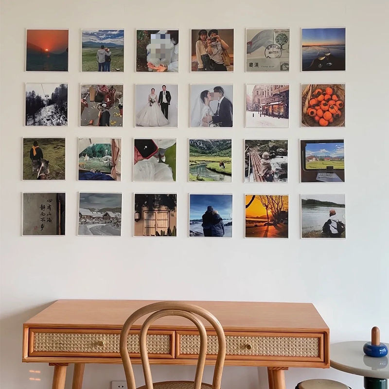 アクリルフォトウォール小紅書フォトカード壁掛けステッカースクエアネット有名人パンチフリースクエア 8inch フォトフレーム