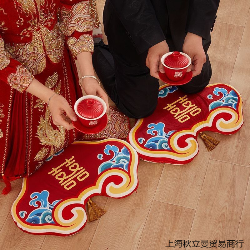 結婚式のお茶を飲むためのひざまずくマット、乾杯用の祝福マット、乾杯用の赤いウェディングマット、花嫁の口の変更、ウェディング用品、綿