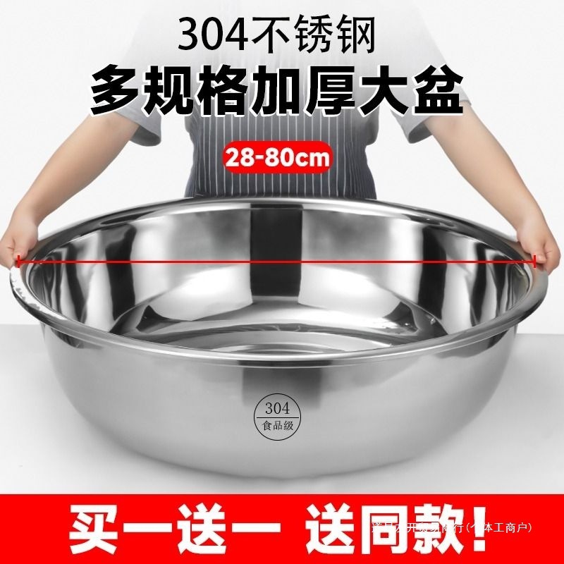 304ステンレスたらいの特厚の反対側の大きいたらいの洗面器の洗面器の業務用の大きいサイズのたらいの風呂の洗濯の特厚のたらい