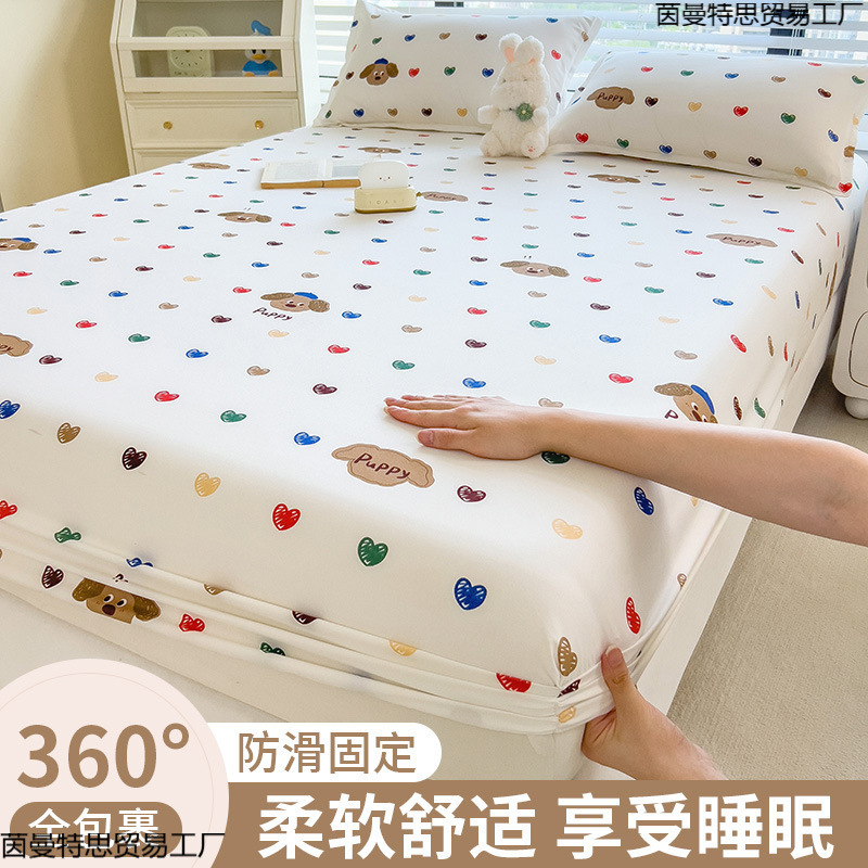夏のプリントのベッドカバーは全部滑り止めで洗濯できます。