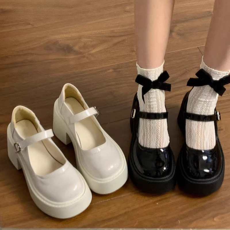 甘くてクールな太いヒールの小さな革靴春の新しい厚底フレンチレトロメリージェーンウェッジシューズ
