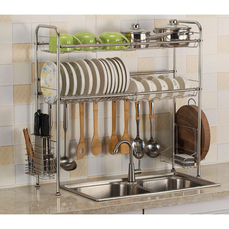 [ドロップシッピング] ステンレス鋼の水切り食器収納ラック二層キッチン食器と箸プレートキッチン用品収納ラック