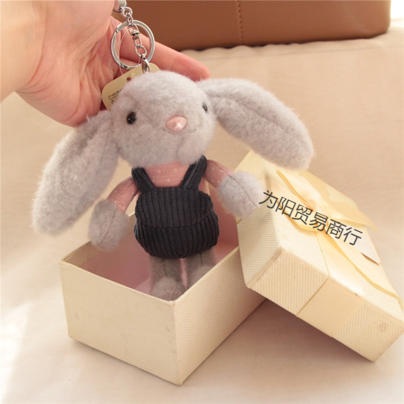 かわいいオーバーオール長い耳バニーぬいぐるみキーホルダーハンギングチェーンバックパックスクールバッグ小さなペンダント女性のための