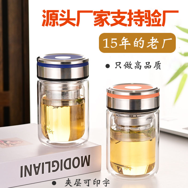 摔不烂钢化玻璃杯茶水分离泡茶杯小巧杯子高颜值女生办公室喝水杯