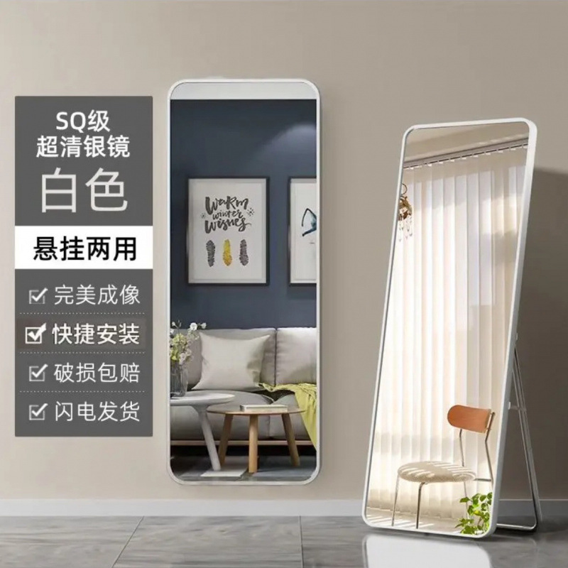 新款可移动全身可固定镜穿衣镜子家用落地式壁挂宿舍立体简约一体