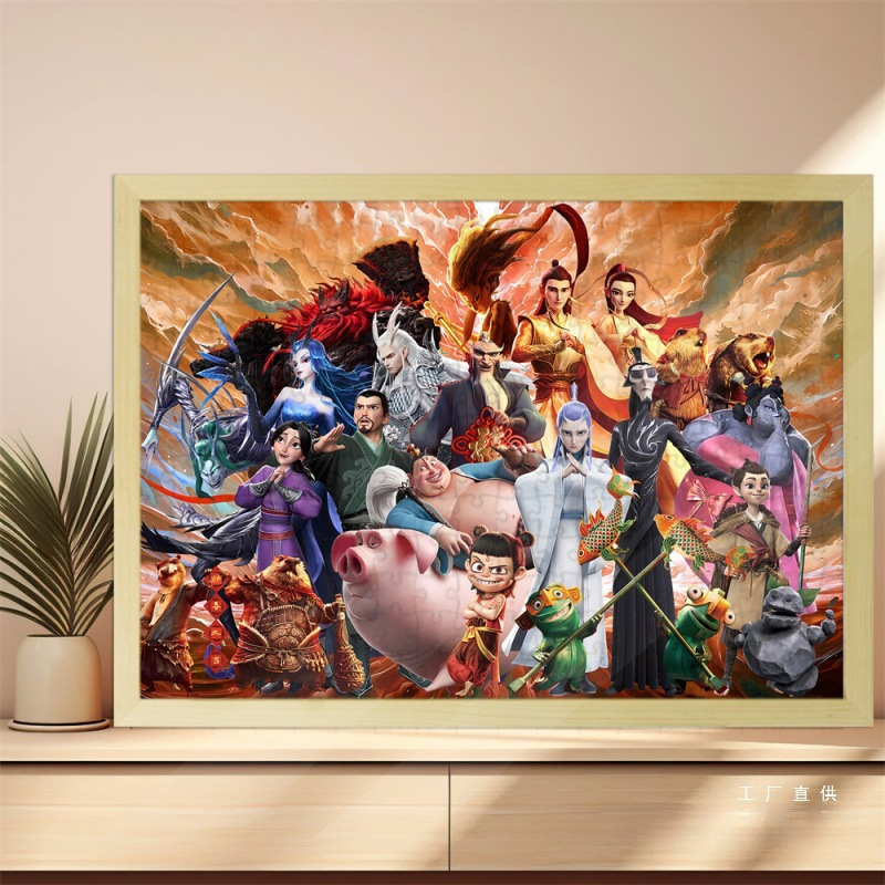 新款哪吒魔童闹海2拼图1000片国潮带框定zhi解压儿童玩具绢花其他