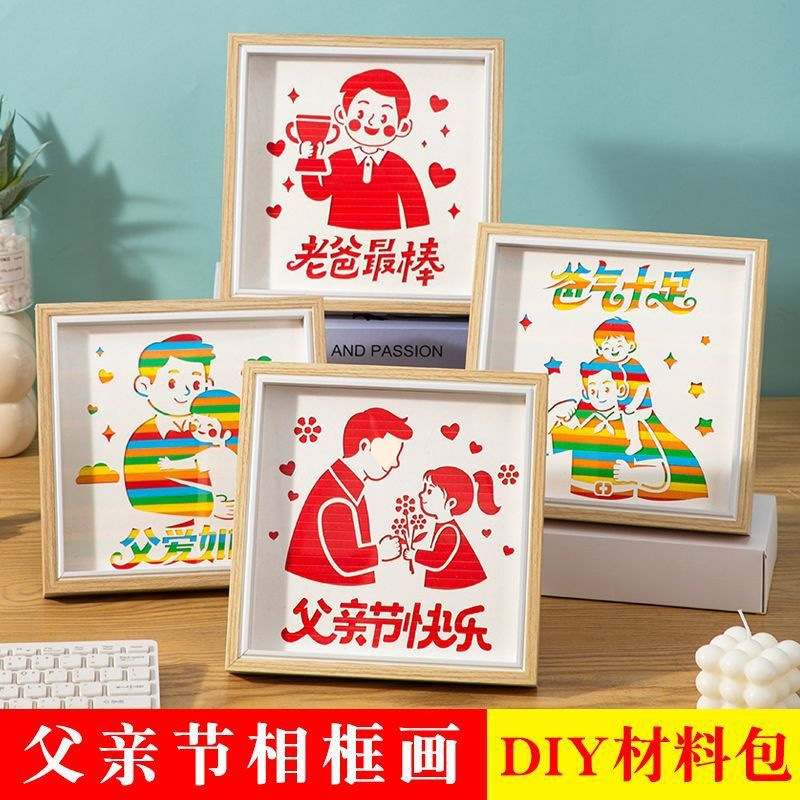 父亲节手工diy礼物编织相框画材料包亲子活动幼儿园儿童创意跨境