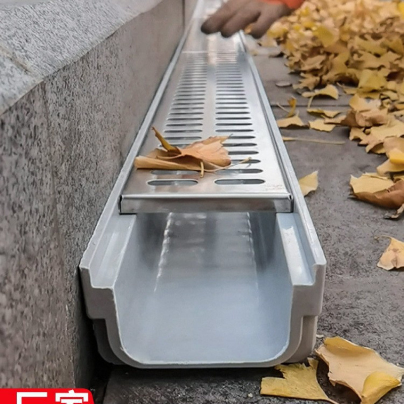 成品排水沟U型槽厨房阳台庭院子树脂线性U形地沟下水道不锈钢盖板