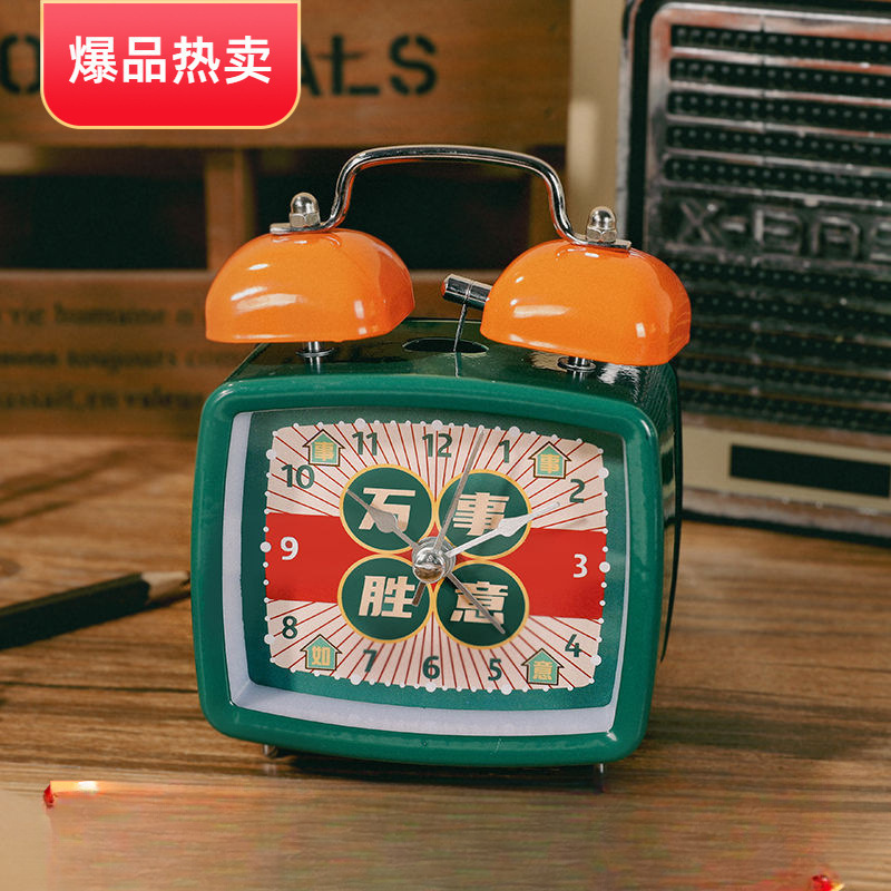 闹钟创意复古简约老式闹钟学生声音大叫醒起床时钟台式大音量合金