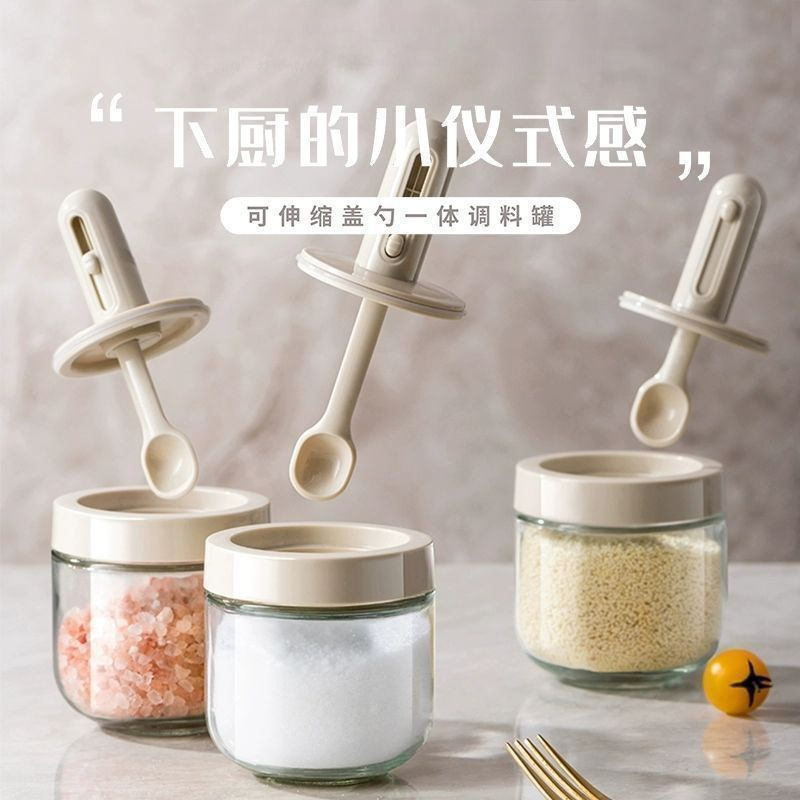 盐罐伸缩组合密封调料瓶套装厨房防潮调料味精家用调味瓶一体玻璃
