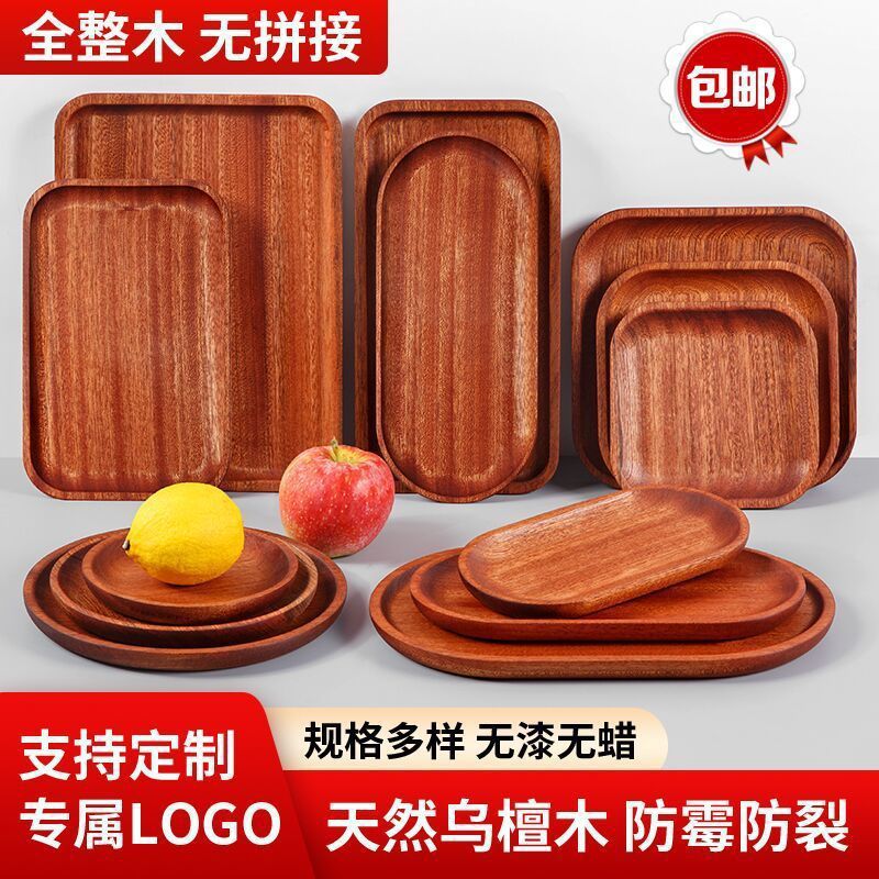 家用天然乌檀木质托盘复古椭圆形托盘家用餐盘茶水托盘