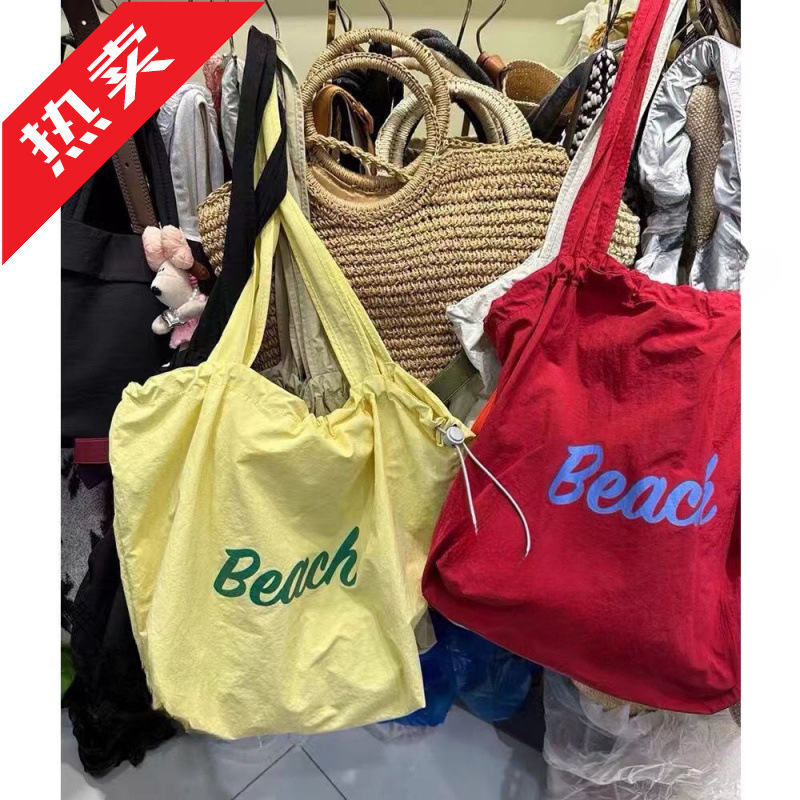 韩版帆布包2025ins新款日系单肩大容量手提袋抽绳通勤托特包