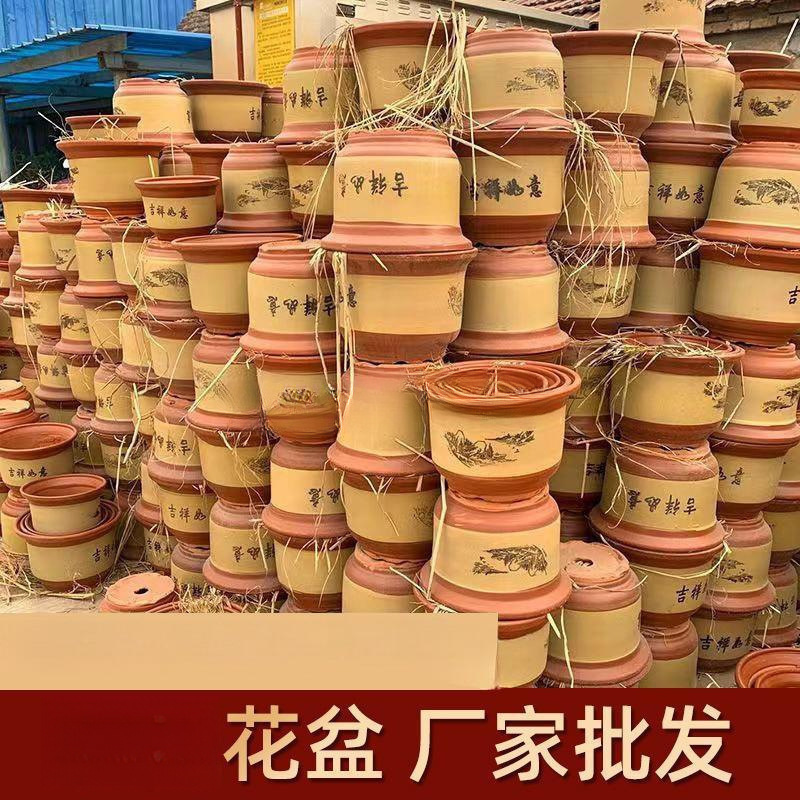 绿植紫砂大花盆陶土透气价盆大号口径家用花盆陶瓷陶瓷姜黄色花盆