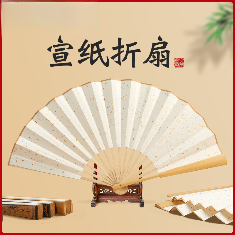 六品堂书法折扇空白宣纸扇子古风绘画扇手绘国风洒金手工扇形画扇