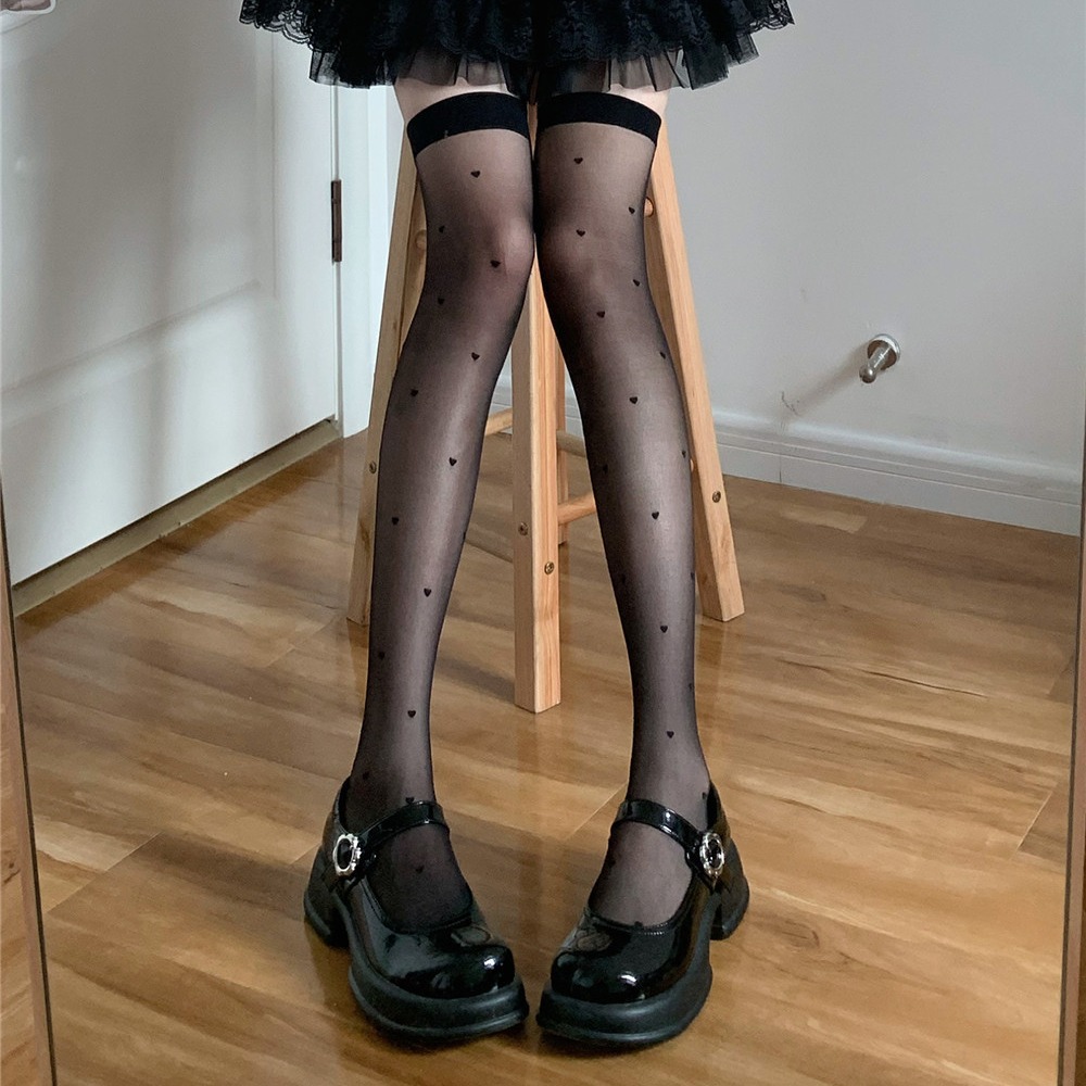 セクシーjk黒糸ギャル蝶結びレース太もも靴下ロリータ靴下女性夏の薄いタイプの膝漁網靴下