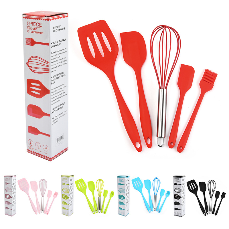 シリカゲル焙煎調理器具5点セットスクレーパー油ブラシ泡立て器キッチン調理スプーンシャベルカラーボックス