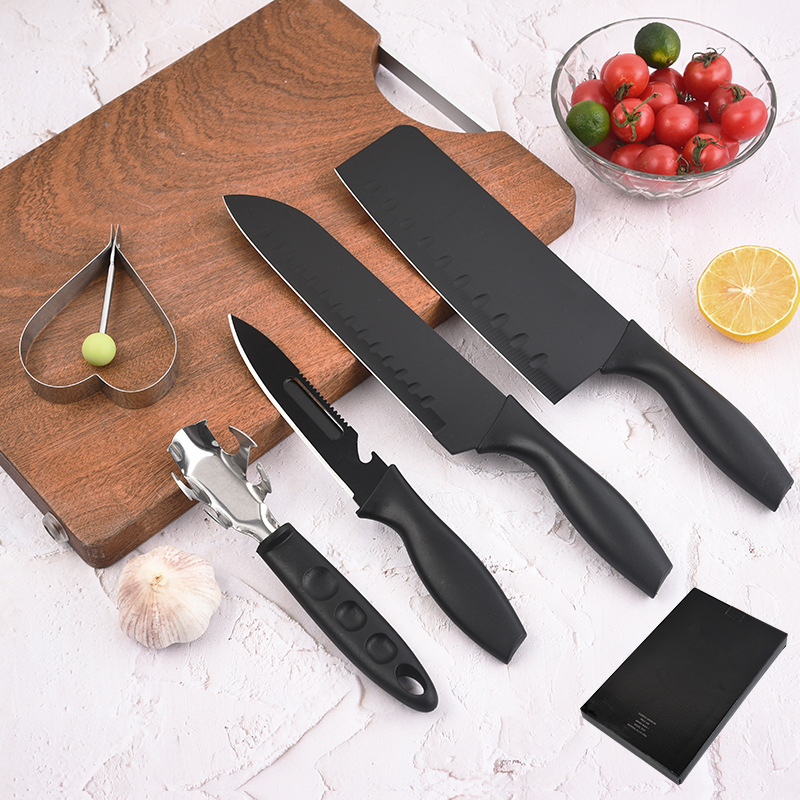 黒鋼塗装5点セットキッチン刃物ギフトセット家庭用鋭利なシェフナイフ包丁セット