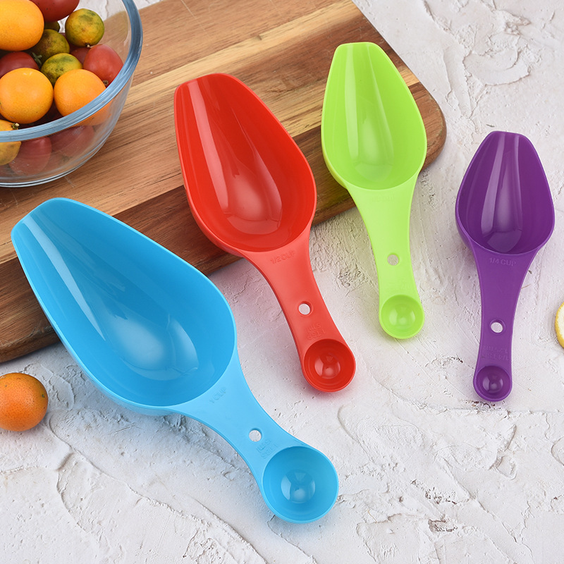 キッチンベーキングガジェットのカラーダブルヘッド測定スプーン4点セットケーキ粉ミルクスプーン目盛り付き5点セットのプラスチック測定スプーン