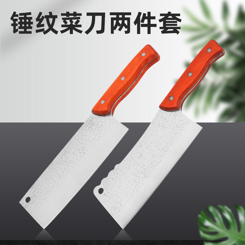 ハンマー包丁2点セット赤木柄ステンレス手作り鍛造家庭用カッター