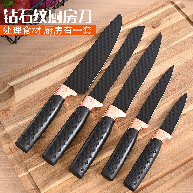 卸売りステンレスダイヤモンド模様メッキ塗装六点セット果物ナイフシェフナイフパンナイフ家庭用ギフトナイフ