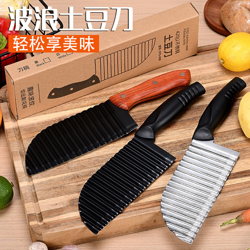 ステンレスのジャガイモの刀の波の形のジャガイモの刀の家庭の台所のスライスの切り器のポテトの狼の歯の波の刀
