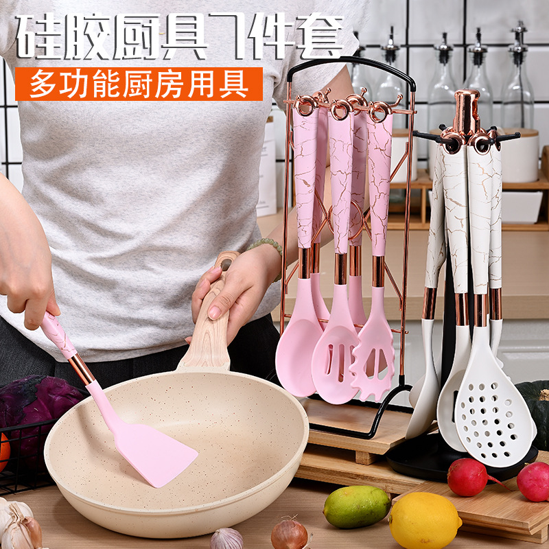 シリカゲル調理器具7点セットバッチハンドルシリカゲルセット家庭用シャベルスプーンすくいフェンス調理器具収納棚付きセット