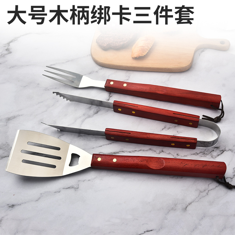 工場卸売り木柄焼き具三点セットバーベキューフォーク焼きシャベル焼きクリップ焼き工具結束セット