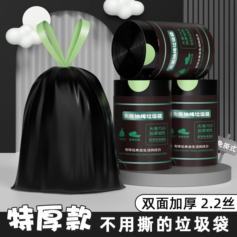 巾着式黒ゴミ袋家庭用クリーニング厚みのあるポータブル大型学生寮ビニール袋リフティングクロージャー