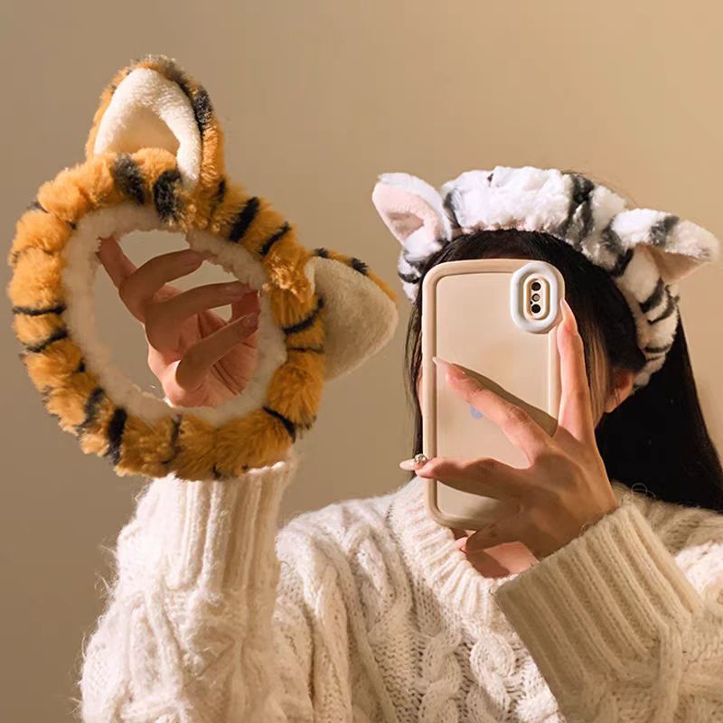 女性の洗顔用タイガーヘアバンド、豪華でかわいいフェイシャルマスクとメイクアップ用の特別なヘアバンド、女性用の特別な秋と冬のヘアピンヘッドバンド