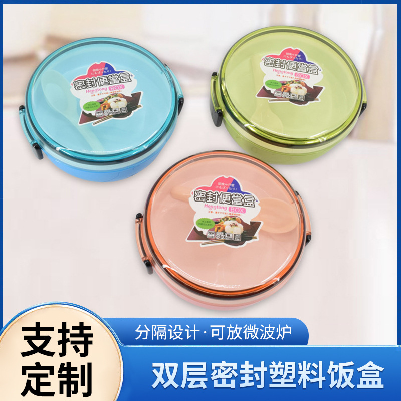 二層プラスチック弁当箱、丸型、厚手、電子レンジ対応、透明、密封、ランチボックス、弁当箱、食品グレード
