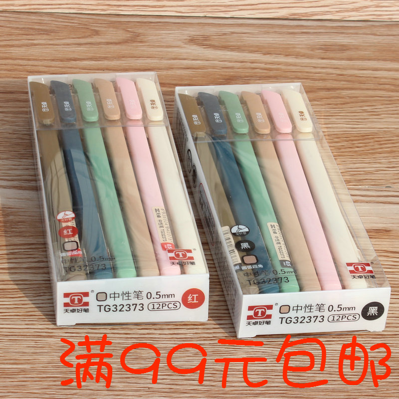 天卓32373モランディ色中性ペン0.5黒赤学生炭素ペン新製品文房具