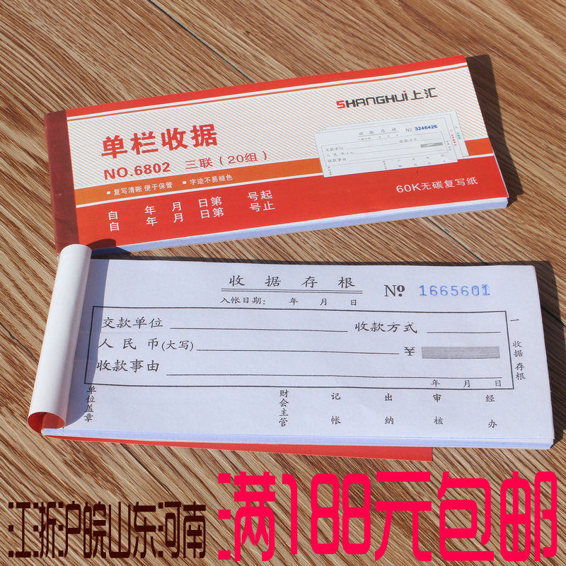 上汇6802狭三連無炭素単欄領収書20組/本17.5*7.5センチ事務文房具卸売り