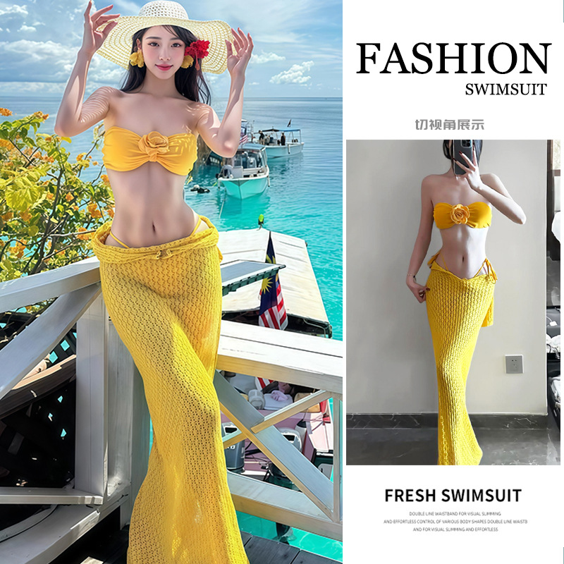 スーパーフェアリー水着女性用 2025 新しい純粋な欲望スタイルのセクシーなチューブトップビキニ 3 点セットビーチアイランド休暇クロスボーダー