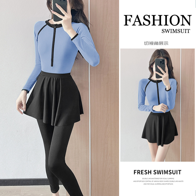 2025 新しい水着女性のお腹カバー痩身スカートサーフィンダイビングスーツビーチ休暇温泉長袖日焼け止め水着