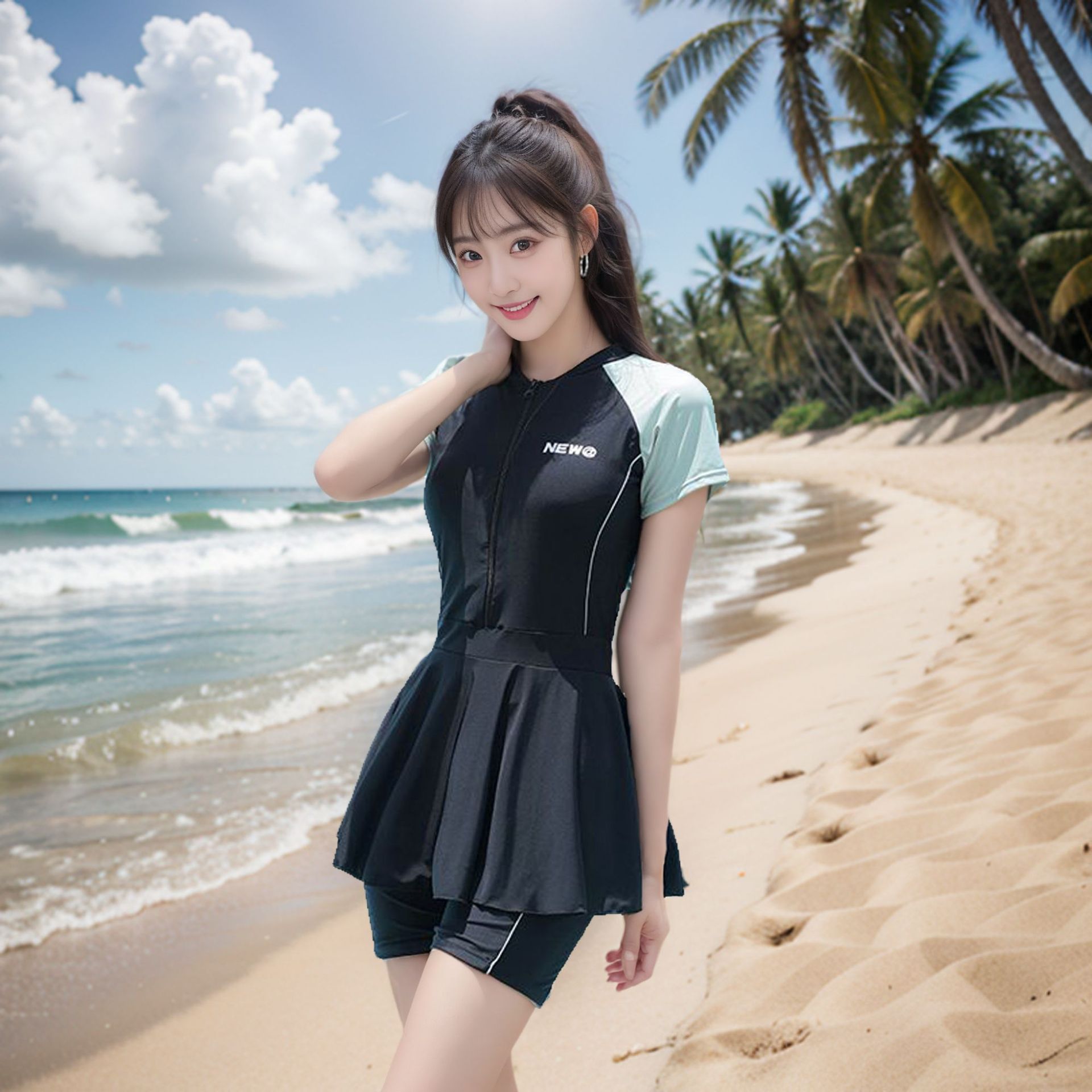 2025年新作水着レディースワンピーススカート風学生お腹カバー痩身コンサバ温泉韓国イン水泳授業分割