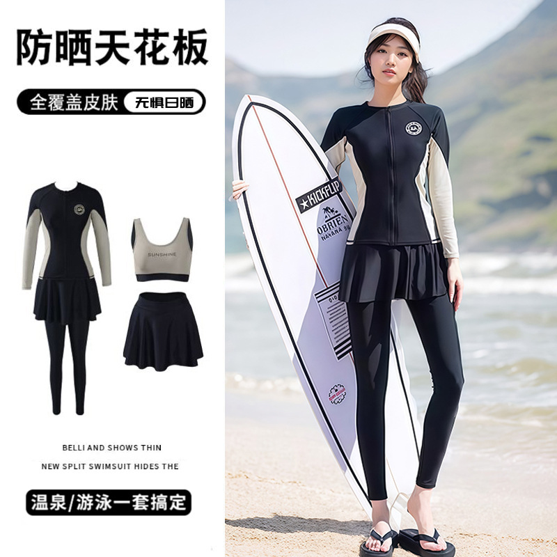 2025 新しいワンピース水着女性のお腹カバー痩身長袖日焼け止めスカートスタイル保守的な学生温泉プラスサイズ脂肪水着