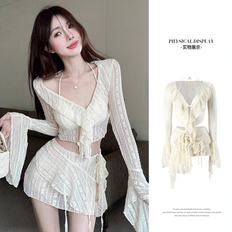 2025年新作水着 レディース 3点セット セパレート セクシー お腹カバー 着痩せ フェミニン風 インス風 長袖 日焼け止め水着