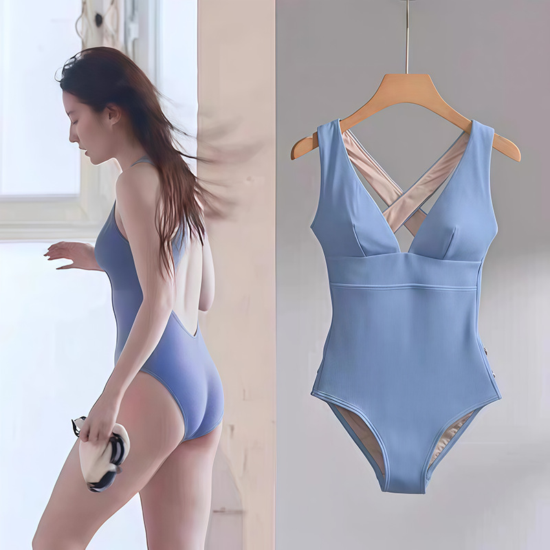 香港風の水着の女性2025新型のレトロな修身のセクシーな背中は首を掛けてお腹を隠してやせている連体式の温泉の水着を現します。