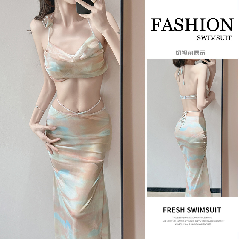 女性用水着 2025 新しいセクシーなロングスカートスタイルスプリットスリーピーススーツ女性の純粋な欲望休暇ハイエンド温泉
