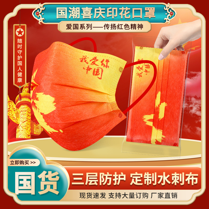 独立包装私はあなたを愛しています中国紅国潮プリント使い捨て三層防護マスク工場スポット卸売り