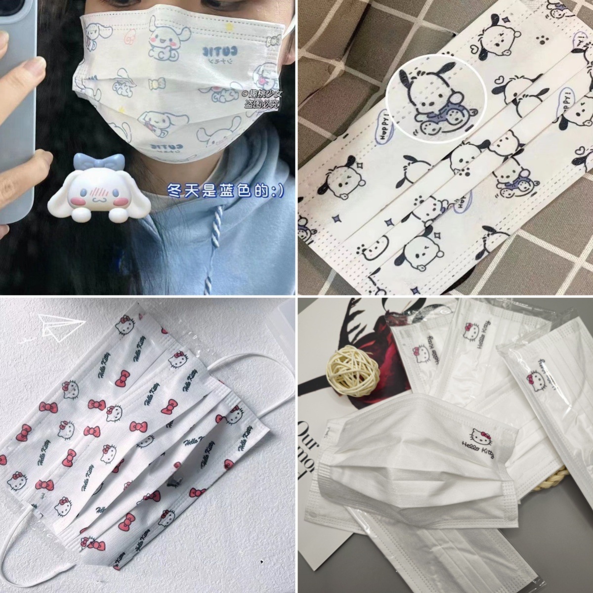 小紅書v型マスクinsかわいいプリント玉桂犬シリーズ使い捨てマスク女子版高颜値成人