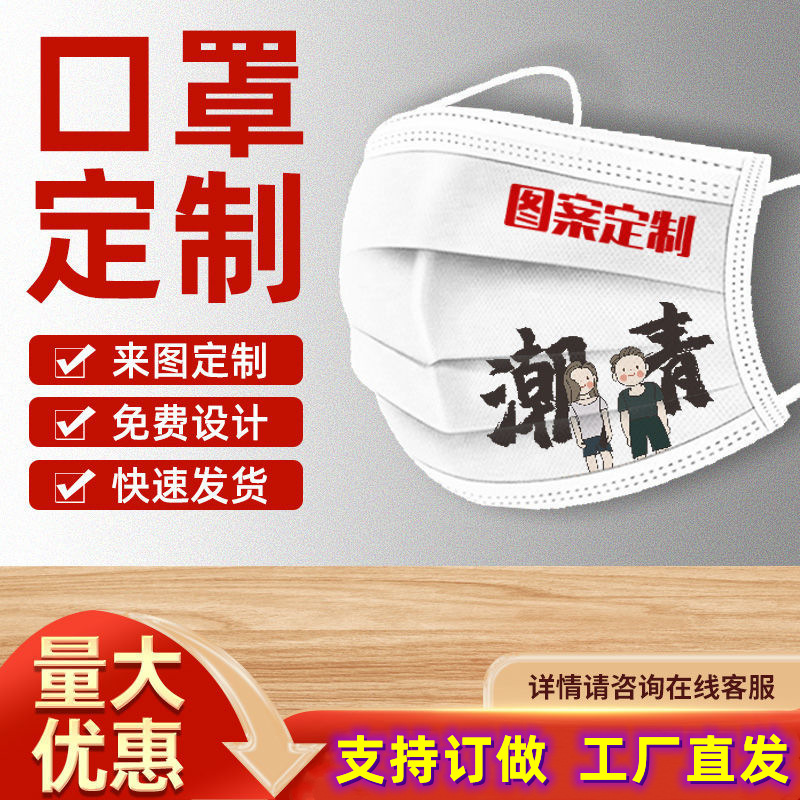 【独立印刷包装】使い捨て三層平面マスク純色カラーは各規格のカスタムロゴに対応しています。