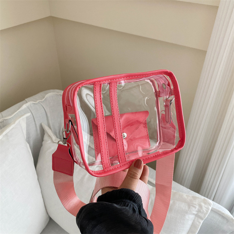 新型シンプル透明ショルダーバッグファッション斜めショルダーバッグ愛ソフト面ビーチpvc子母カバンカジュアル小銭入れ