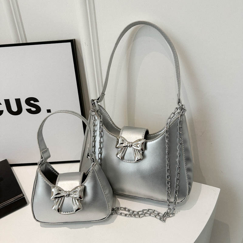 流行ファッションかわいい蝶ネクタイ片肩腋の下バッグ2024夏の新しい女性法棒バッグ純色ハンドバッグ