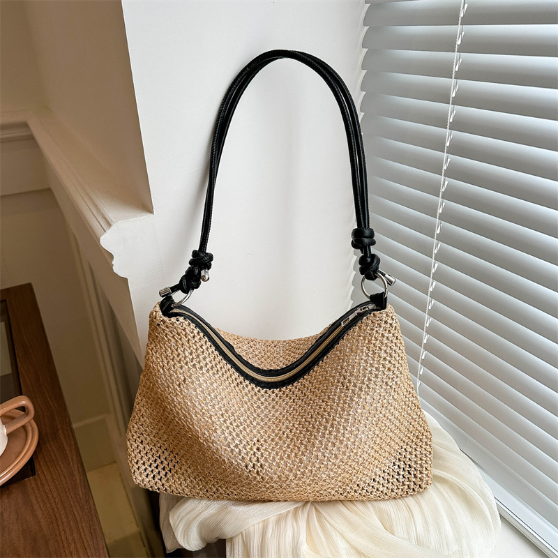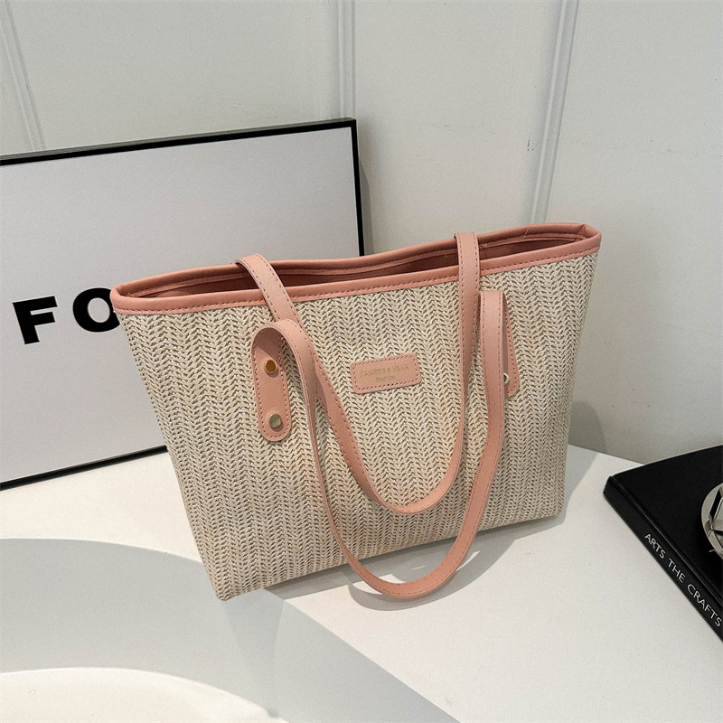 通勤大容量草編みバッグ2024夏新作ファッション洋気衝突色片肩脇下バッグ流行トートバッグ