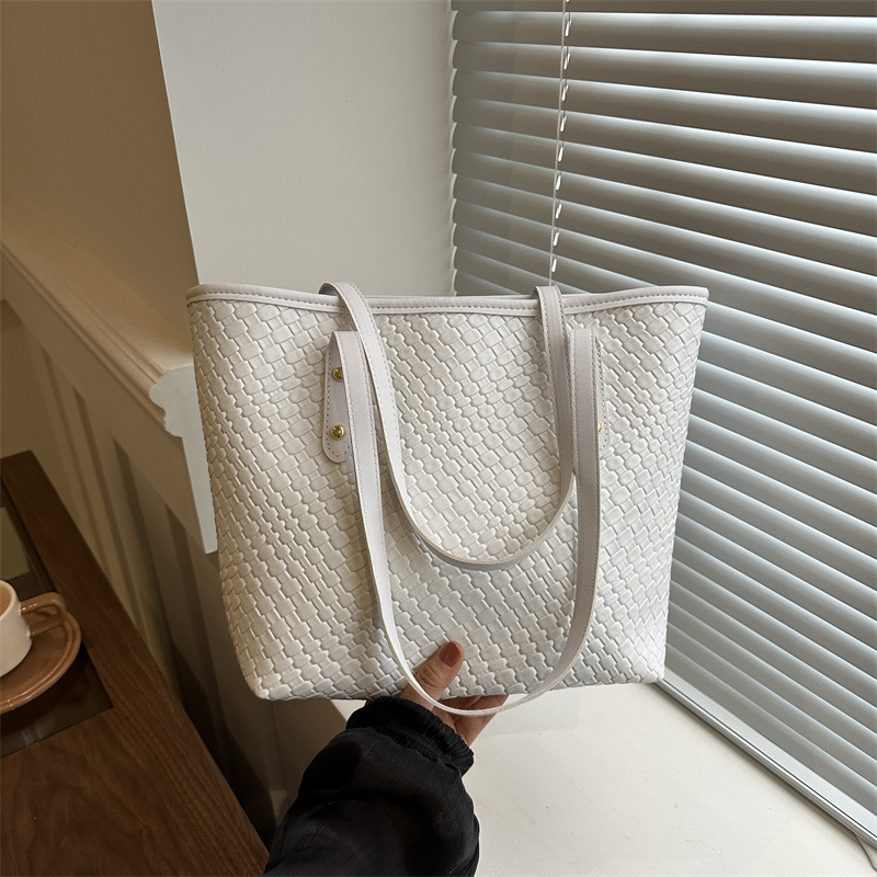 編みの紋様のファッションの特包の女性の2024春の新型の大容量の純色の質感のショルダーバッグの洋風の通勤の包み